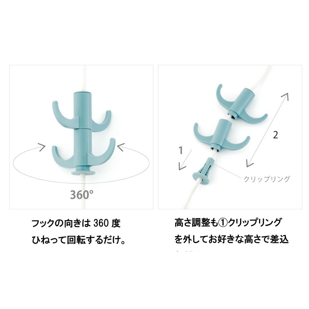 フックの向きは360度調整可能です。フックを回転させるだけで調整できます。